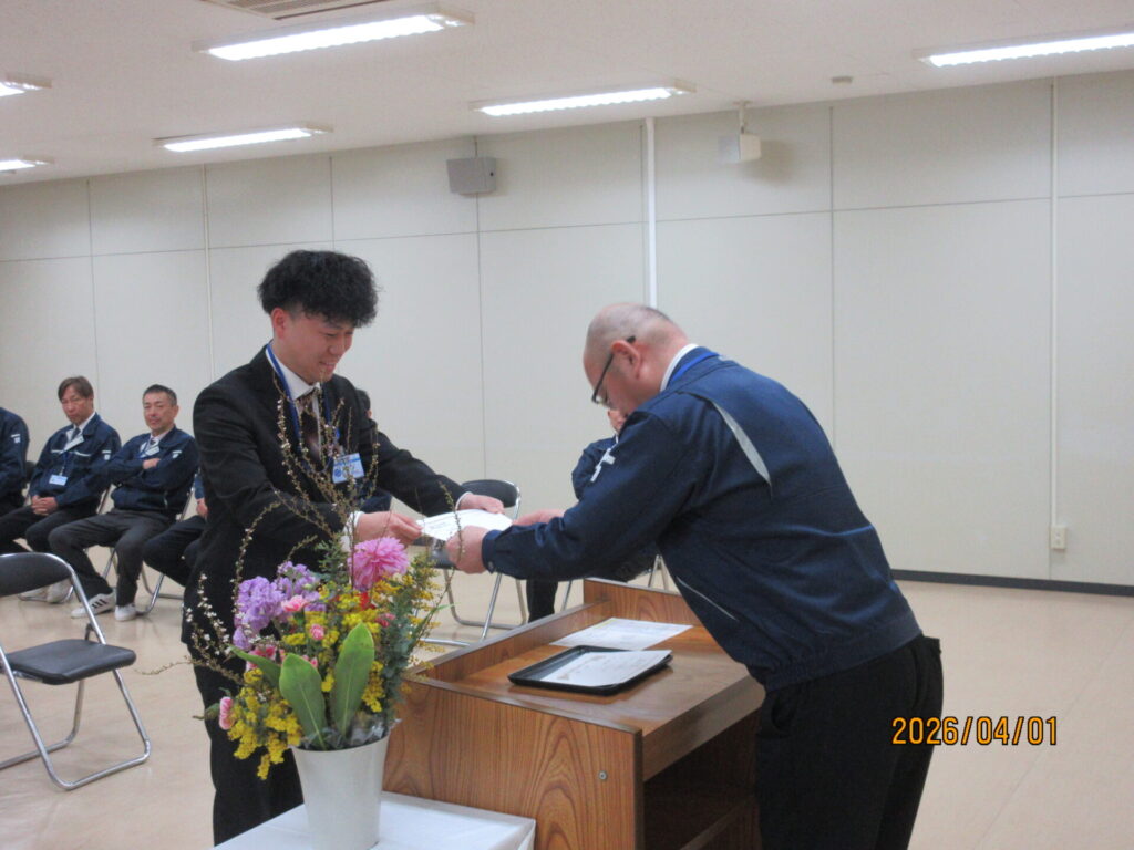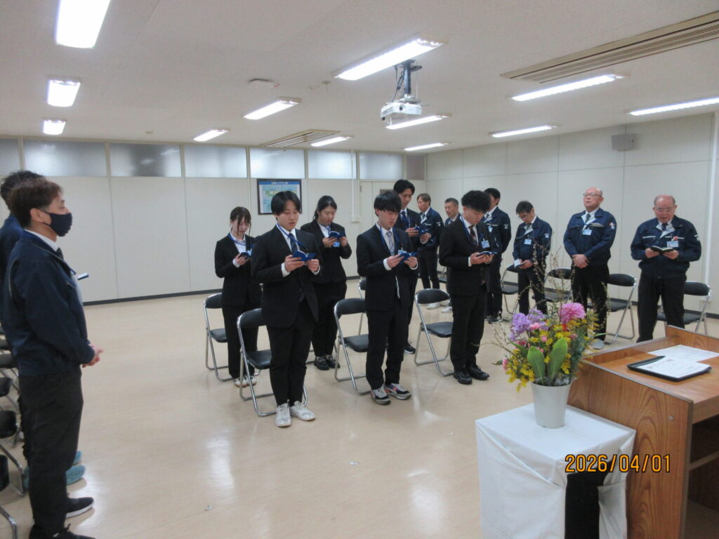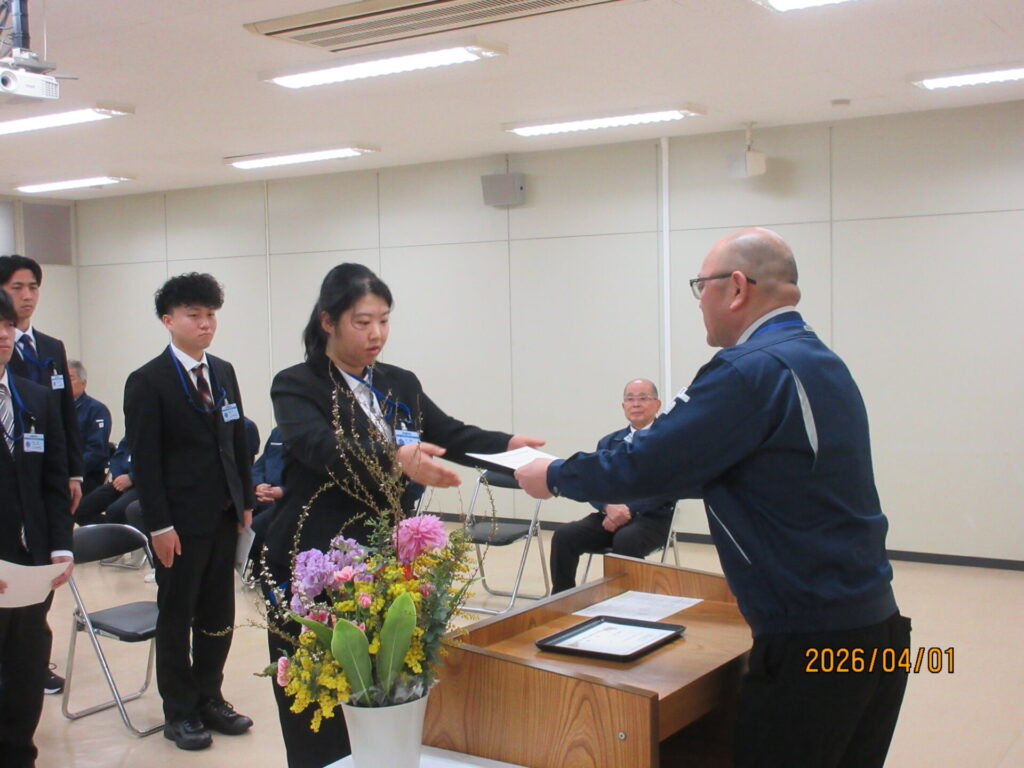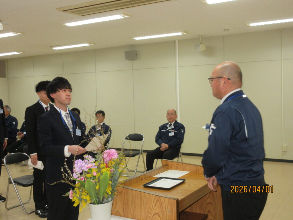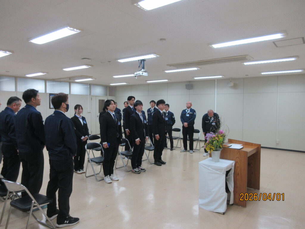 新入社員へ辞令の交付、社長からの祝辞、役員・幹部の紹介、従業員代表からの歓迎のあいさつを行い、最後は新入社員からの決意の言葉をいただき終了となりました。