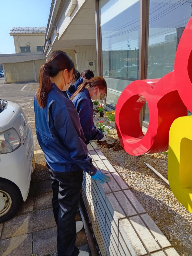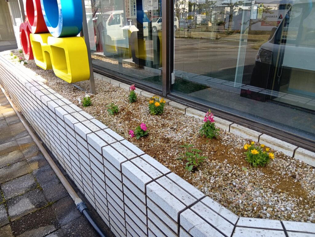 社員用玄関前の花壇にはひまわりの種も植えましたので、夏に向けて立派に育ってほしいです。