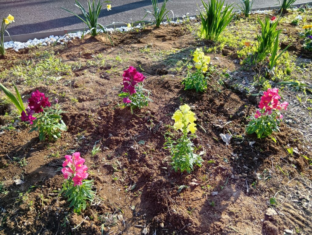 天気に恵まれ、気持ちのいい日差しの下で和気あいあいとしながらも、丁寧かつ一生懸命に色とりどりの花を植えていました。